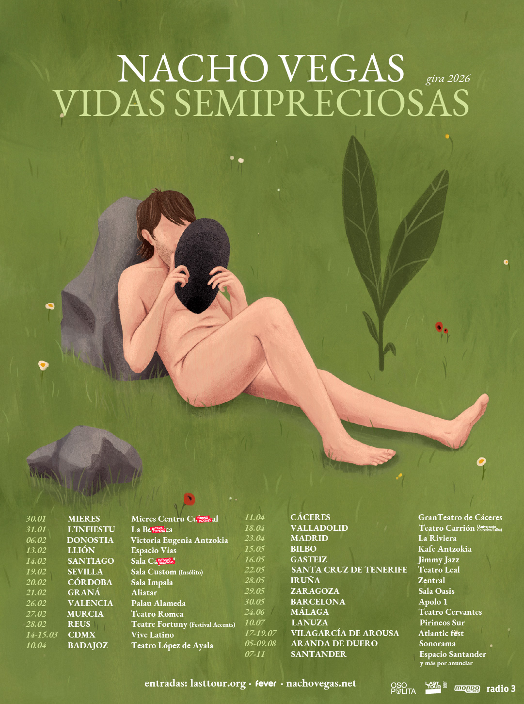 Nacho Vegas lanza Vidas semipreciosas, su noveno álbum de estudio, una obra que reafirma su lugar como una de las voces más singulares y respetadas de la canción popular en castellano (aunque no son pocas las veces en la que lo escuchamos en su otra lengua madre; el asturiano). A punto de cumplir 25 años de trayectoria, el artista vuelve a hacer lo que mejor sabe: tender puentes entre lo íntimo y lo colectivo, entre lo poético y lo político. Lo hace con su pluma afilada y una instrumentación que alterna delicadeza y energía, apoyada en una banda más sólida que nunca. Así, Vegas se entrega al asombro y a una búsqueda de la belleza a través de lo imperfecto y lo cotidiano, de los afectos y las heridas.