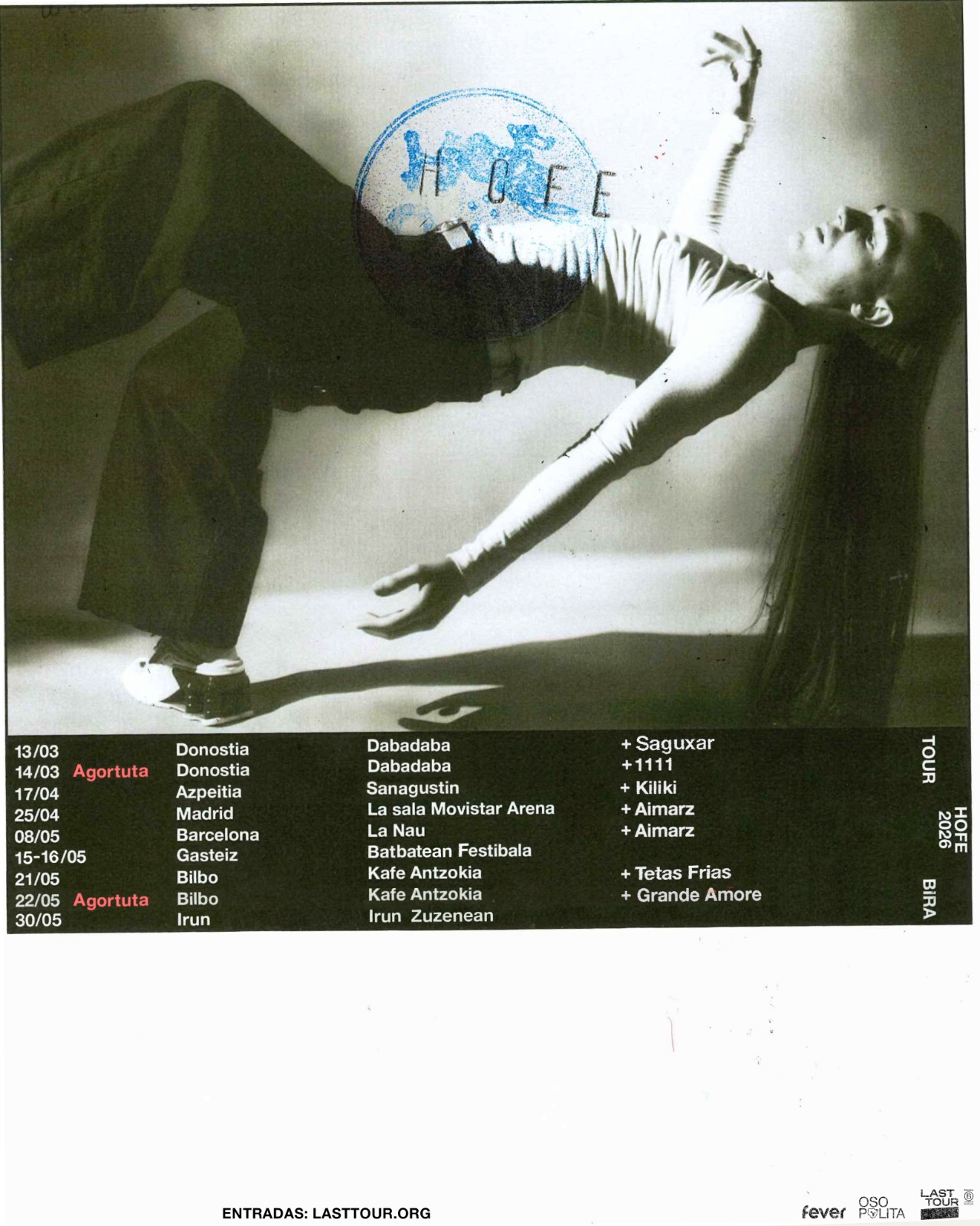 En pleno ascenso imparable, con el lanzamiento de este nuevo tema HOFE arranca su gira de salas 2026, de las cuales varias agotó en cuestión de horas. A partir de marzo, directo infalible directo Donostia (Dabadaba, 13 y 14 de marzo), para continuar en Azpeitia (Sanagustin Kulturgunea, 17/04), Madrid (La Sala Movistar Arena 25,04), Barcelona (La Nau 8/05), y Bilbo (Kafe Antzokia 21 y 22 de mayo).